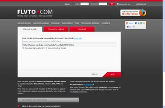 Además, Flvto también puede convertir una URL en FLV para conservar el vídeo, no sólo el audio. Y todo ello en pocos segundos y ofreciendo una descarga inmediata, sin registros ni excesivos anuncios.